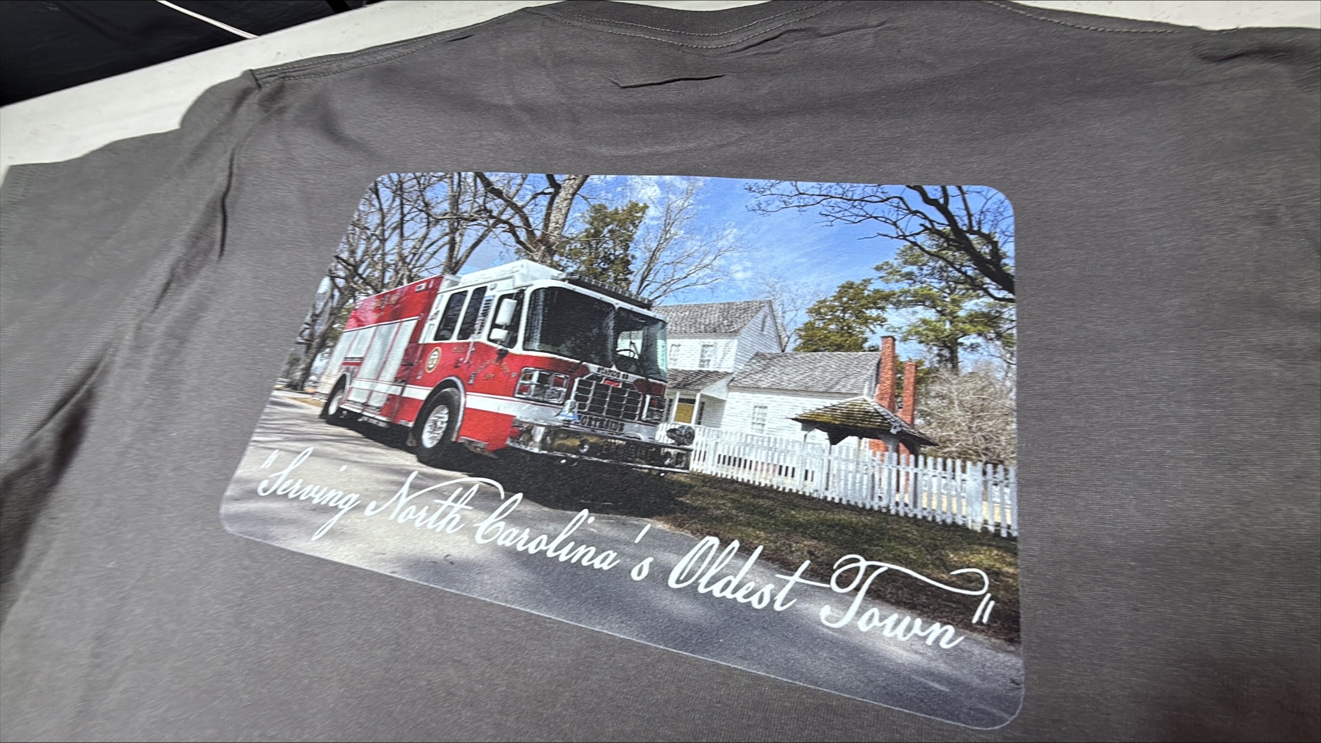 Ultra Cotton Adult T-Shirt In Charcoal with the Bath FD Truck design. Offered in Short and Long Sleeve.