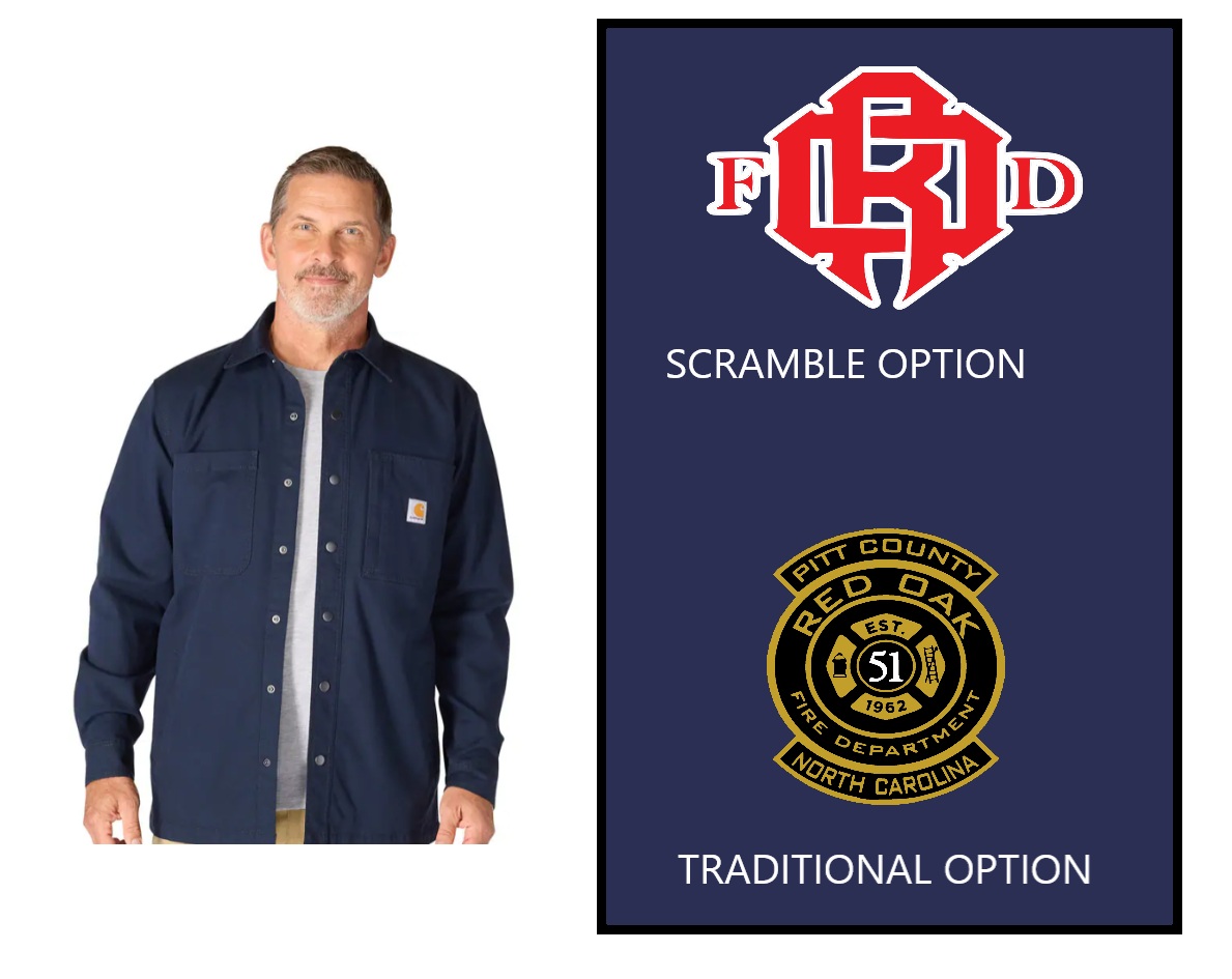 ROFD Carhartt Fleece Snap Jacket. Item is navy and comes with the Left Chest Embroidery.
